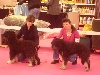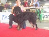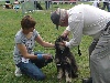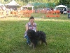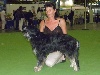 Chienne féminine pourrait avoir un peu plus de substance, angulation balancée, ligne supérieure pourrait être un peu plus droite, croupe légèrement courte, allures un peu désordonnées, il faut qu'elle ait un peu plus confiance